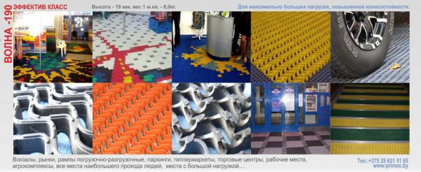 Ознакомившись с аналоговыми покрытиями мировых производителей, конструкторы компании разработали и внедрили в производство ковровый модуль «Волна-190».